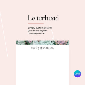 Corporate Stationery is adorned with earthy greenery to stand out from the typical plain business drab. Customize this template with your business address, and be sure to print your stationery using a professional printer. Crafted in Canva, simply add your business info today. This is not a physical product.
